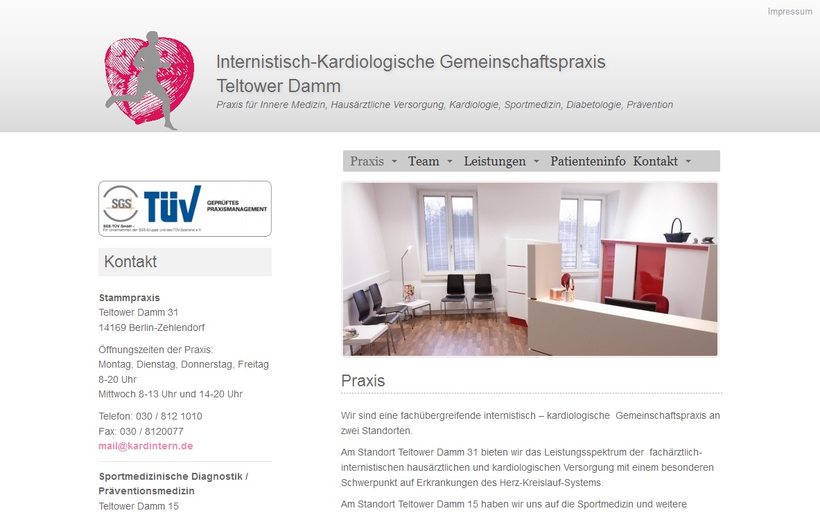 Kardintern ist der Kurzname für die Internistisch-Kardiologische Gemeinschaftspraxis Teltower Damm in Berlin-Zehlendorf. Der Internetauftritt soll die beiden Standorte und Tätigkeitsbereiche der Praxen kommunizieren. Durch das CMS wird den Mitarbeitern die Möglichkeit gegeben, die Website selbst zu pflegen und zu aktualisieren.
