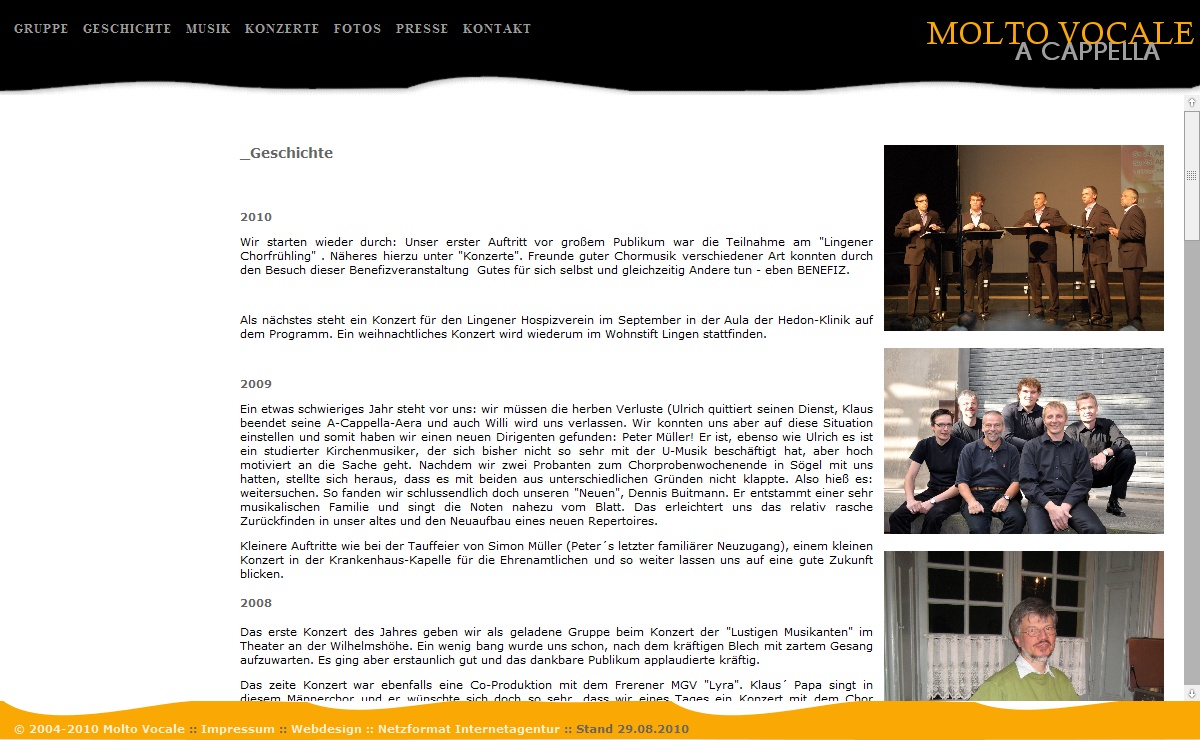 Molto Vocale ist eine aufstrebende A Cappella Gruppe aus dem Emsland. Ihr Repertoire umfasst Stücke „alter Meister“ ebenso wie Lieder aus den 20er und 60/70er Jahren.