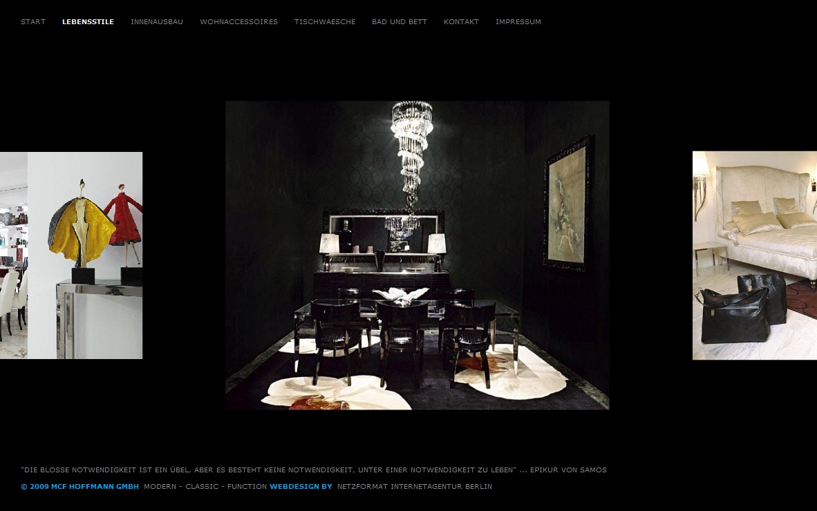MCF Hoffmann erfüllt exklusive Wünsche bei der Einrichtung mit Möbeln, Lampen, Accessoires, Stoffen und Dekorationen.