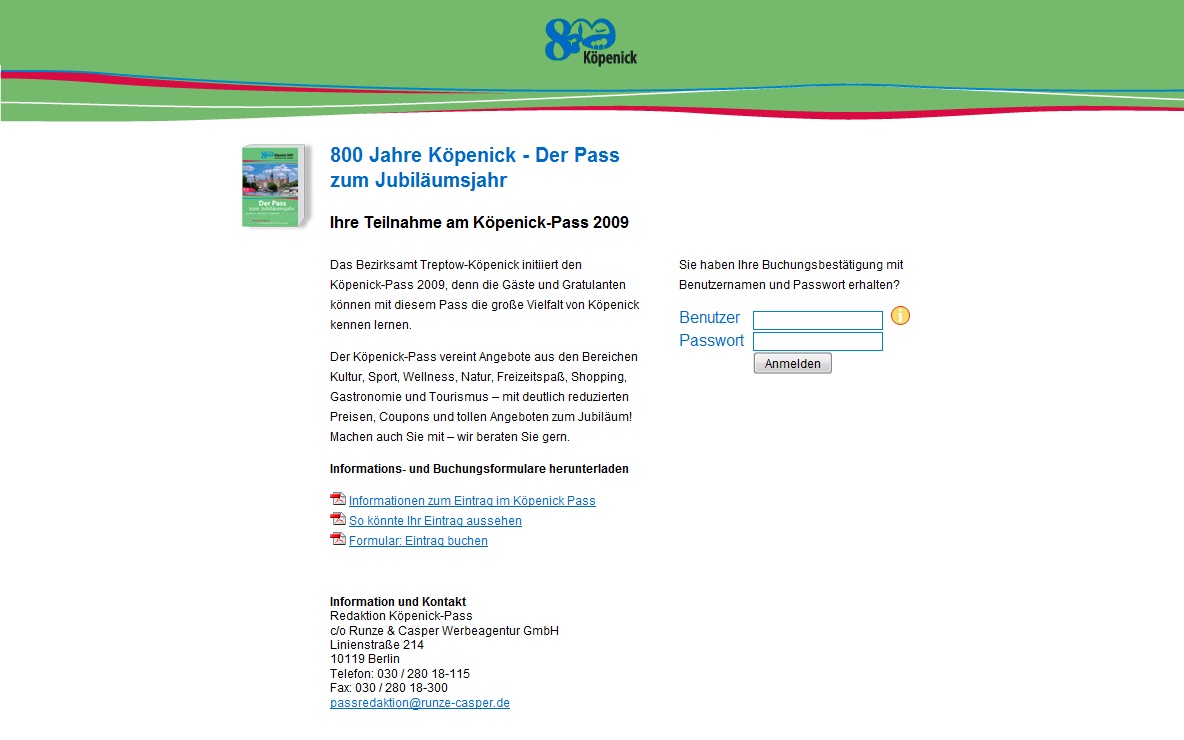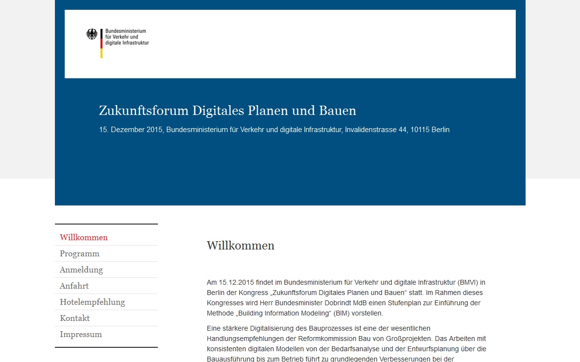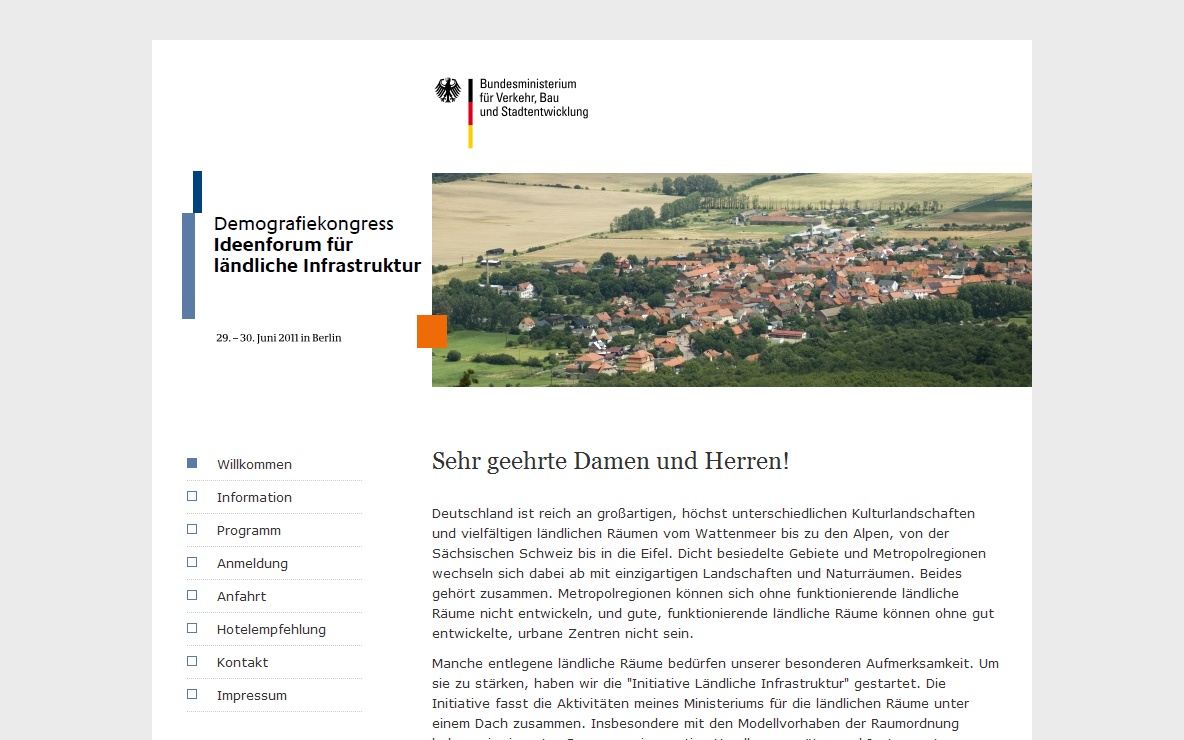Internetauftritt mit Online-Registrierung für einen Kongress des BMVBS