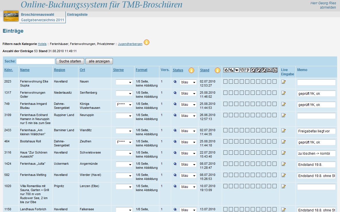 Redaktionssystem mit Eintragsübersicht