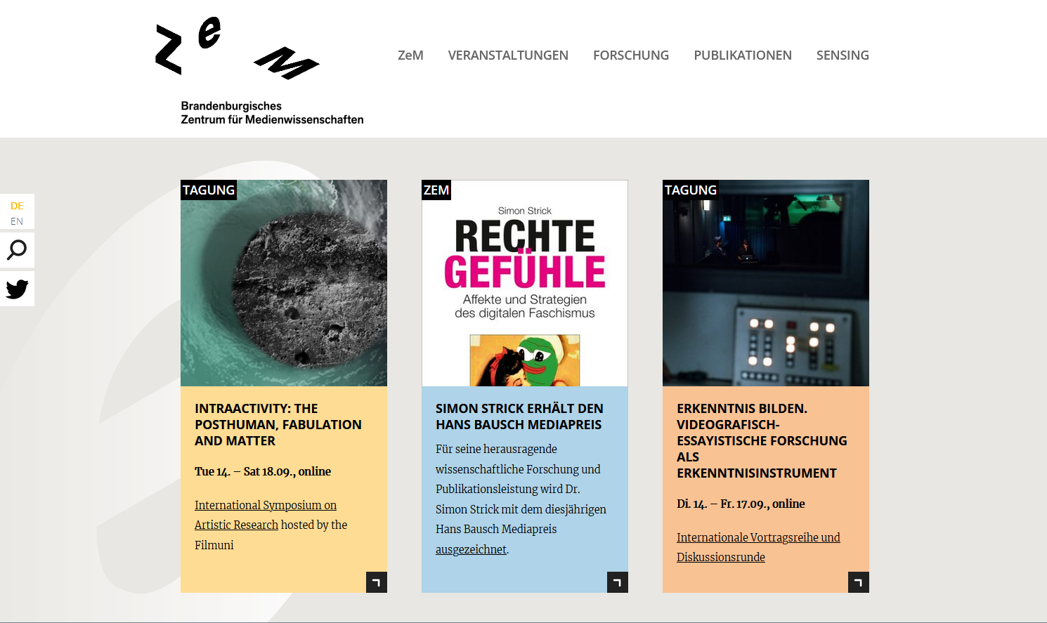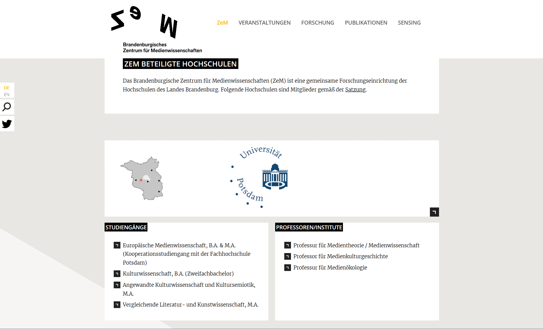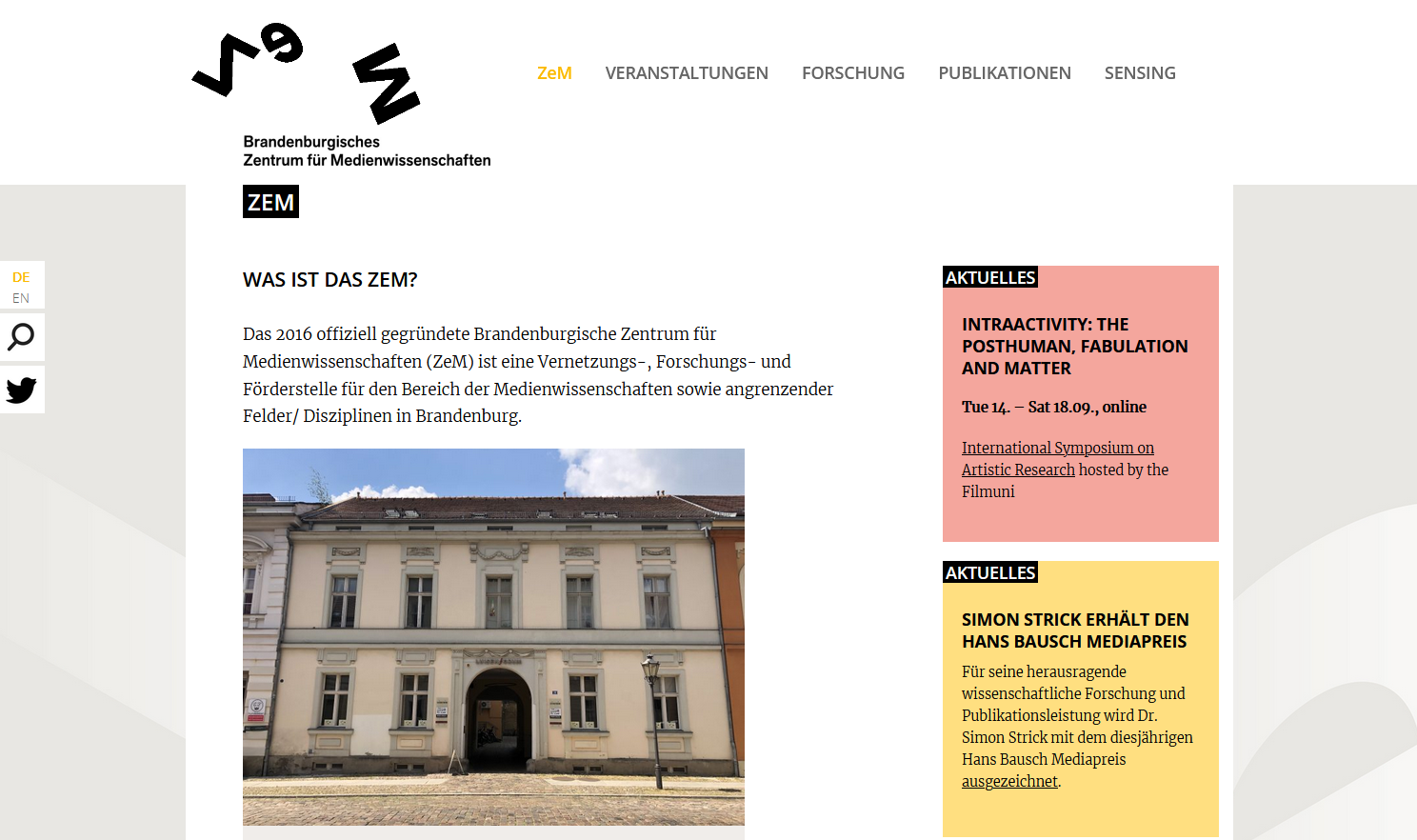 Das Brandenburgische Zentrum für Medienwissenschaften (ZeM) ist die zentrale Vernetzungs-, Forschungs- und Förderstelle für den Bereich der Medienwissenschaften an der acht Hochschulen des Landes beteiligt sind.