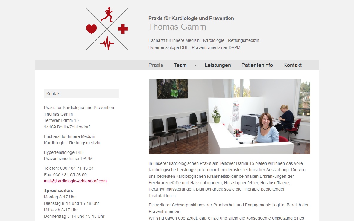 Die kardiologischen Praxis Thomas Gamm in Berlin-Zehlendorf bietet das volle kardiologische Leistungsspektrum mit modernster technischer Ausstattung. Ein weiterer Schwerpunkt liegt im Bereich der Präventivmedizin.