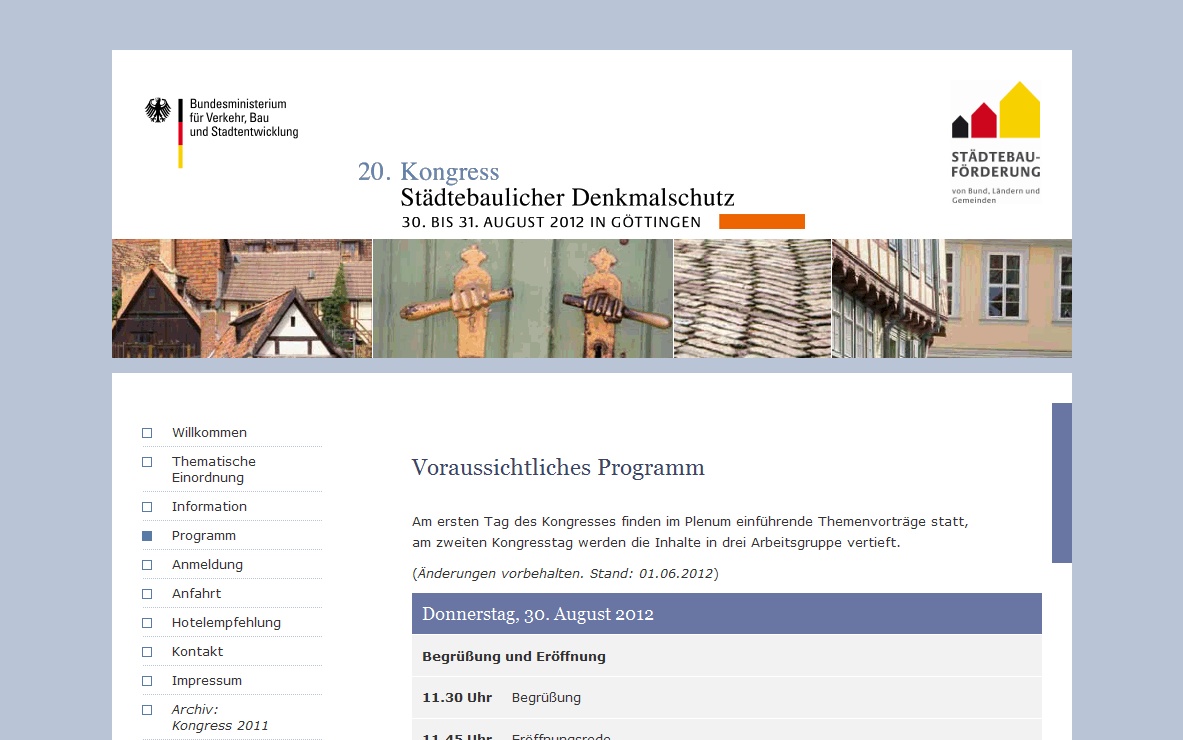Das BMUB (vorher BMVBS) führt führt jährlich den Kongress Städtebaulicher Denkmalschutz durch. Dabei werden jedes Mal aktuelle Schwerpunkte zum Thema aufgegriffen und diskutiert.